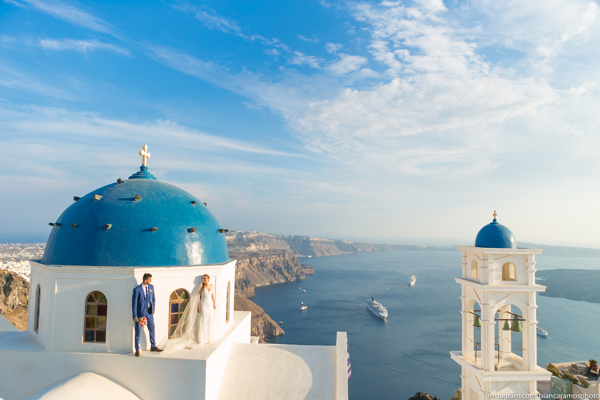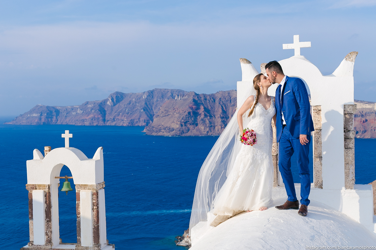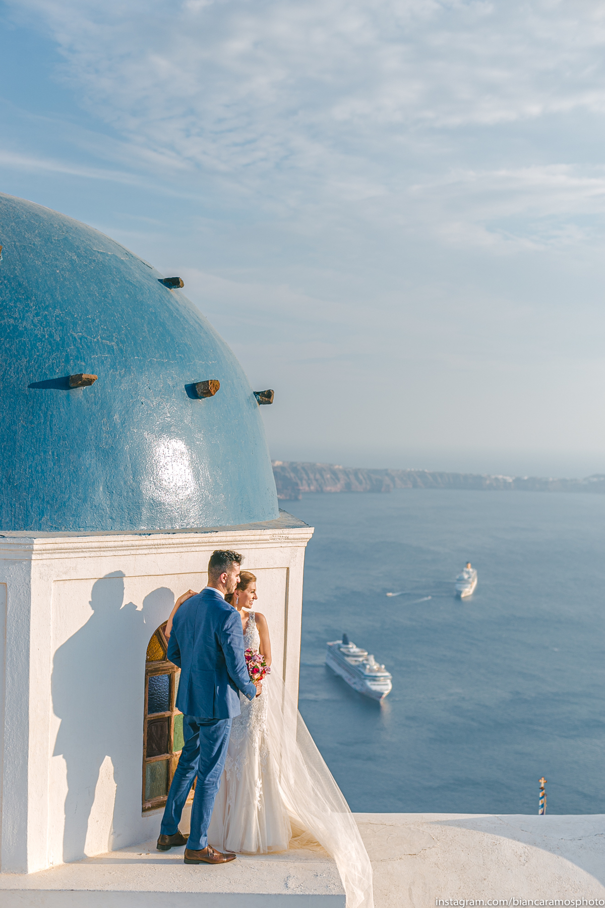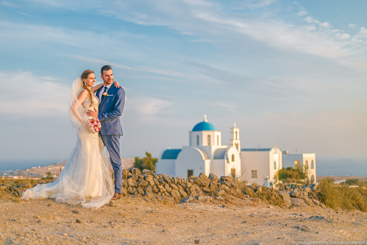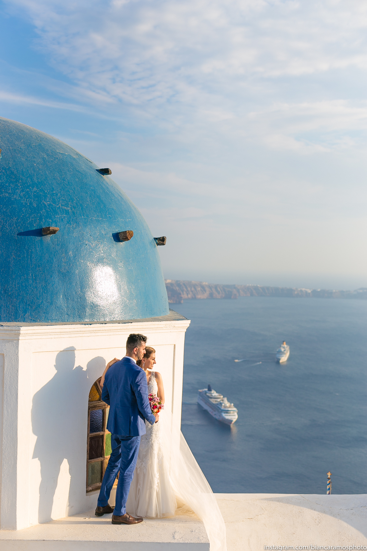 Apos a cerimonia fomos ate um ponto no alto da caldera para as fotos e no dia seguinte de manha, busquei o casal para as fotos nas igrejinhas de Oia!