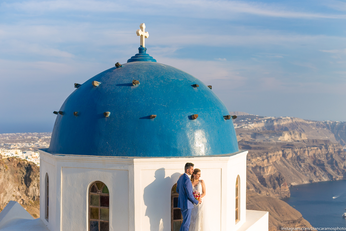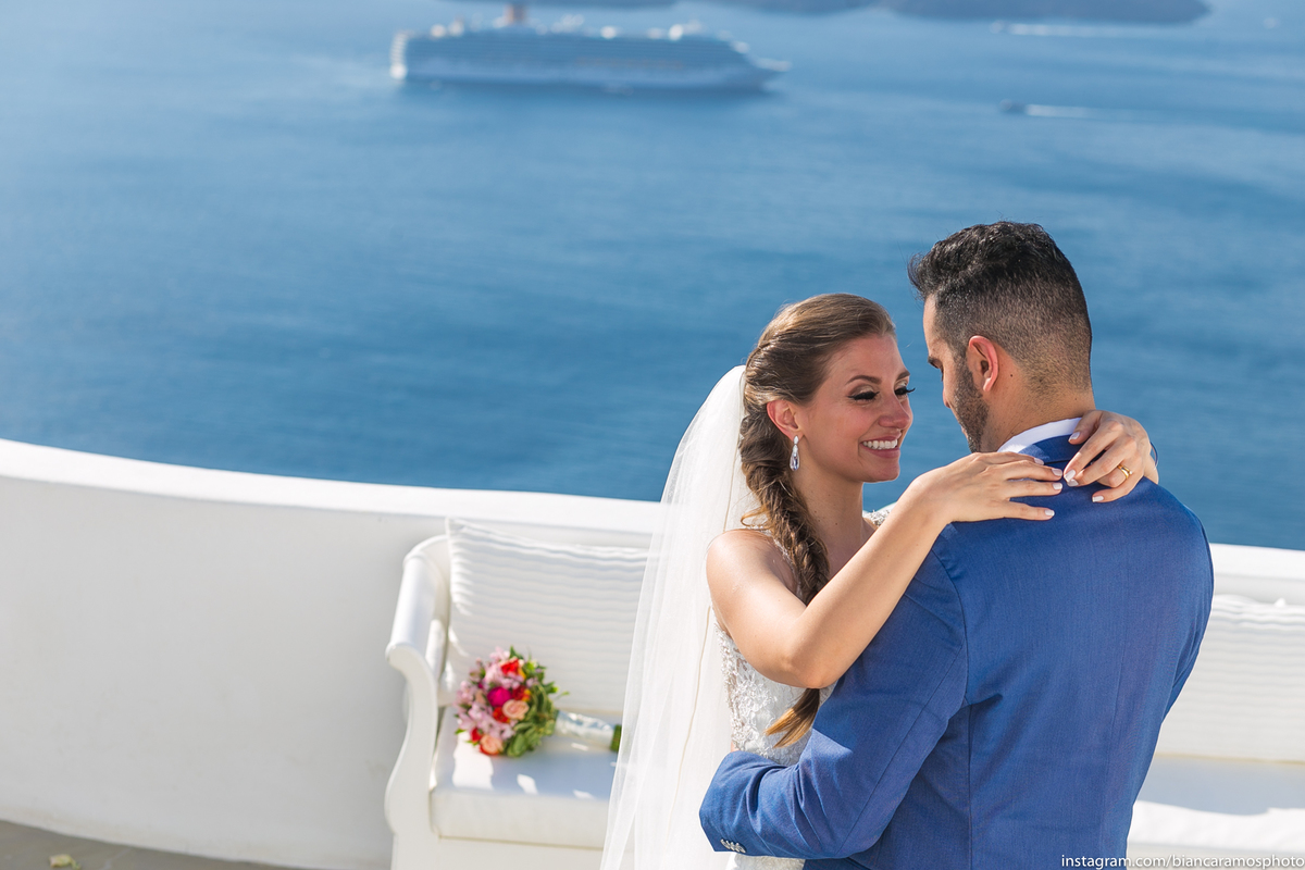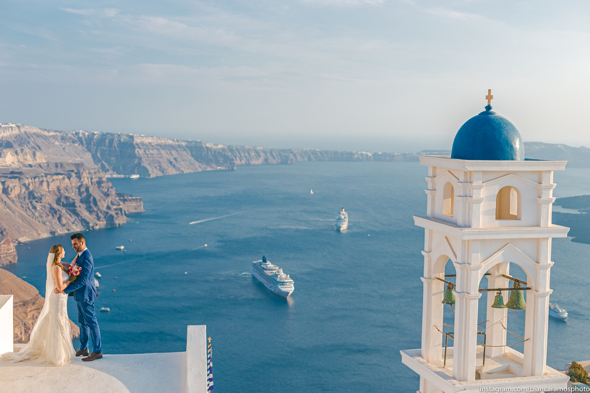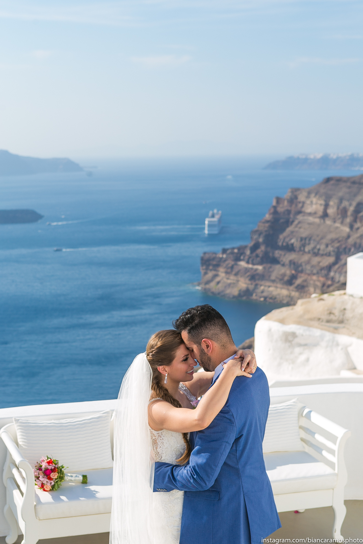 Apos a cerimonia fomos ate um ponto no alto da caldera para as fotos e no dia seguinte de manha, busquei o casal para as fotos nas igrejinhas de Oia!