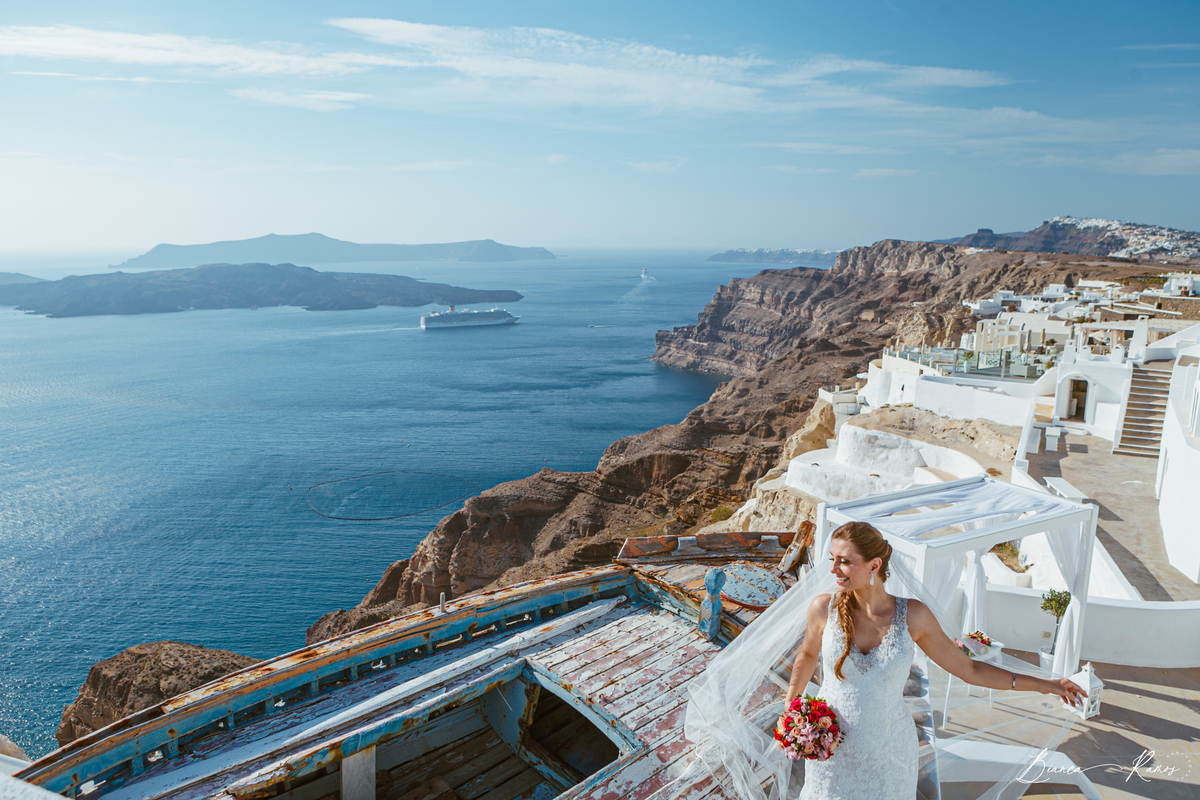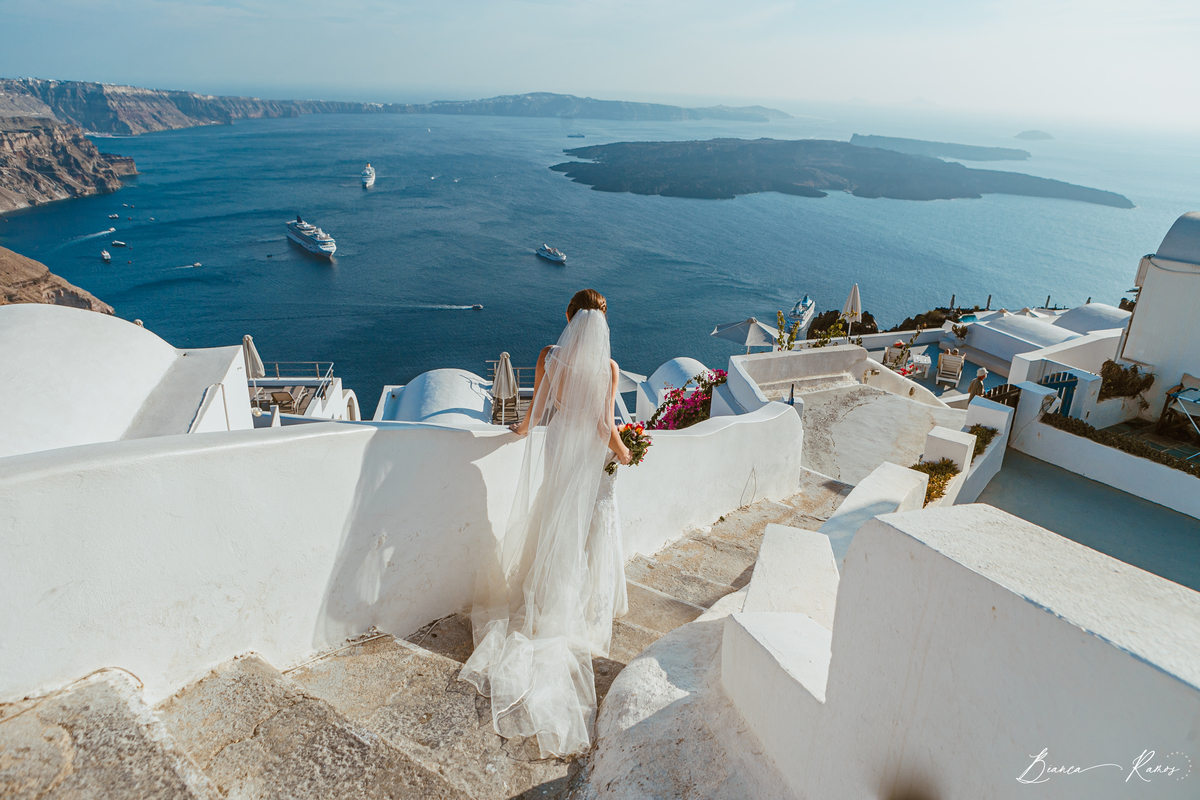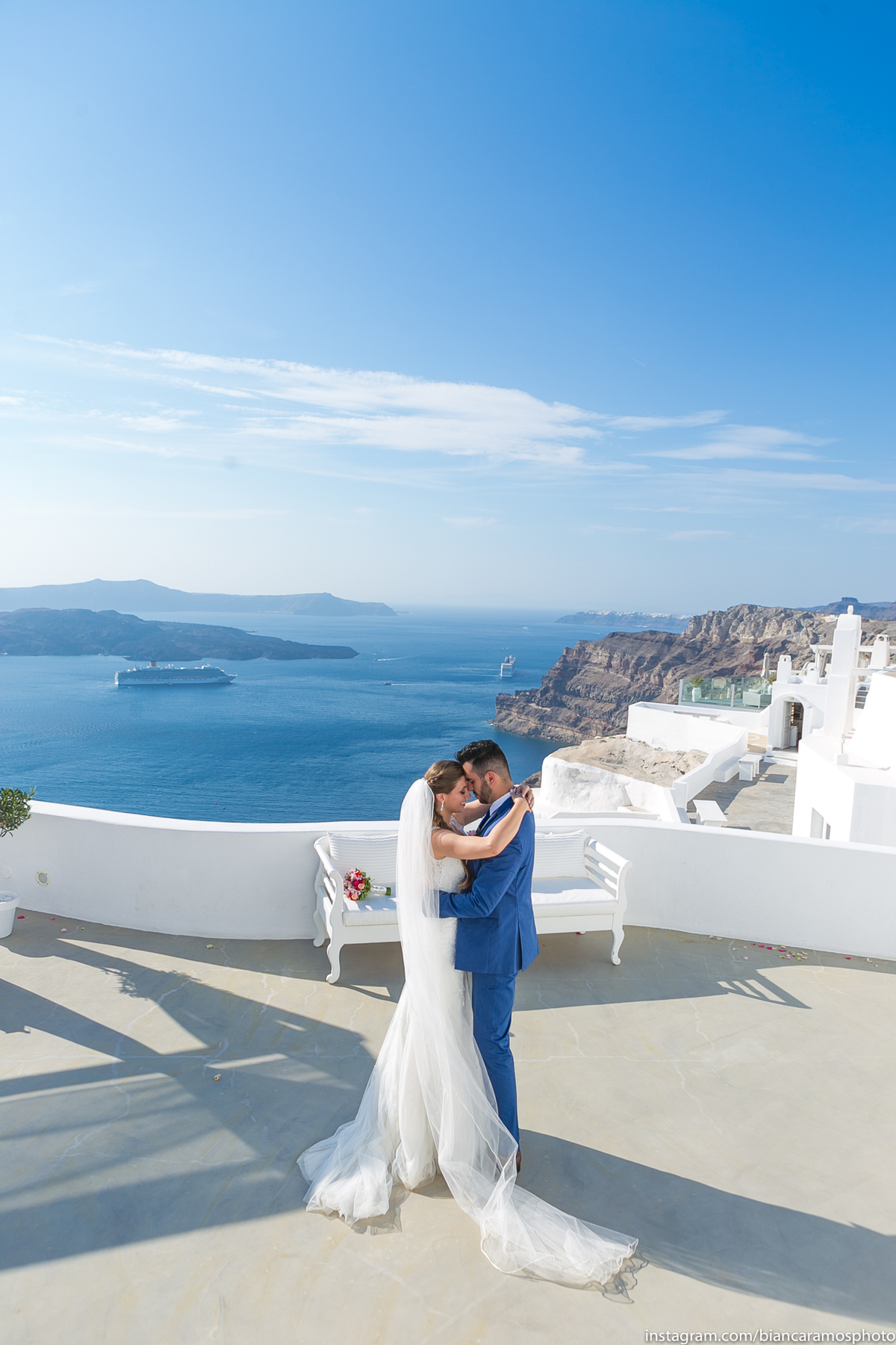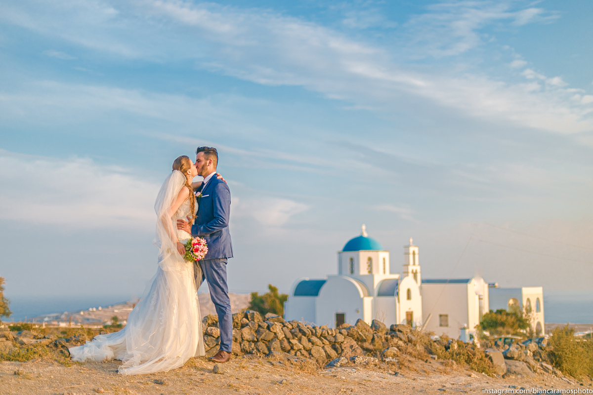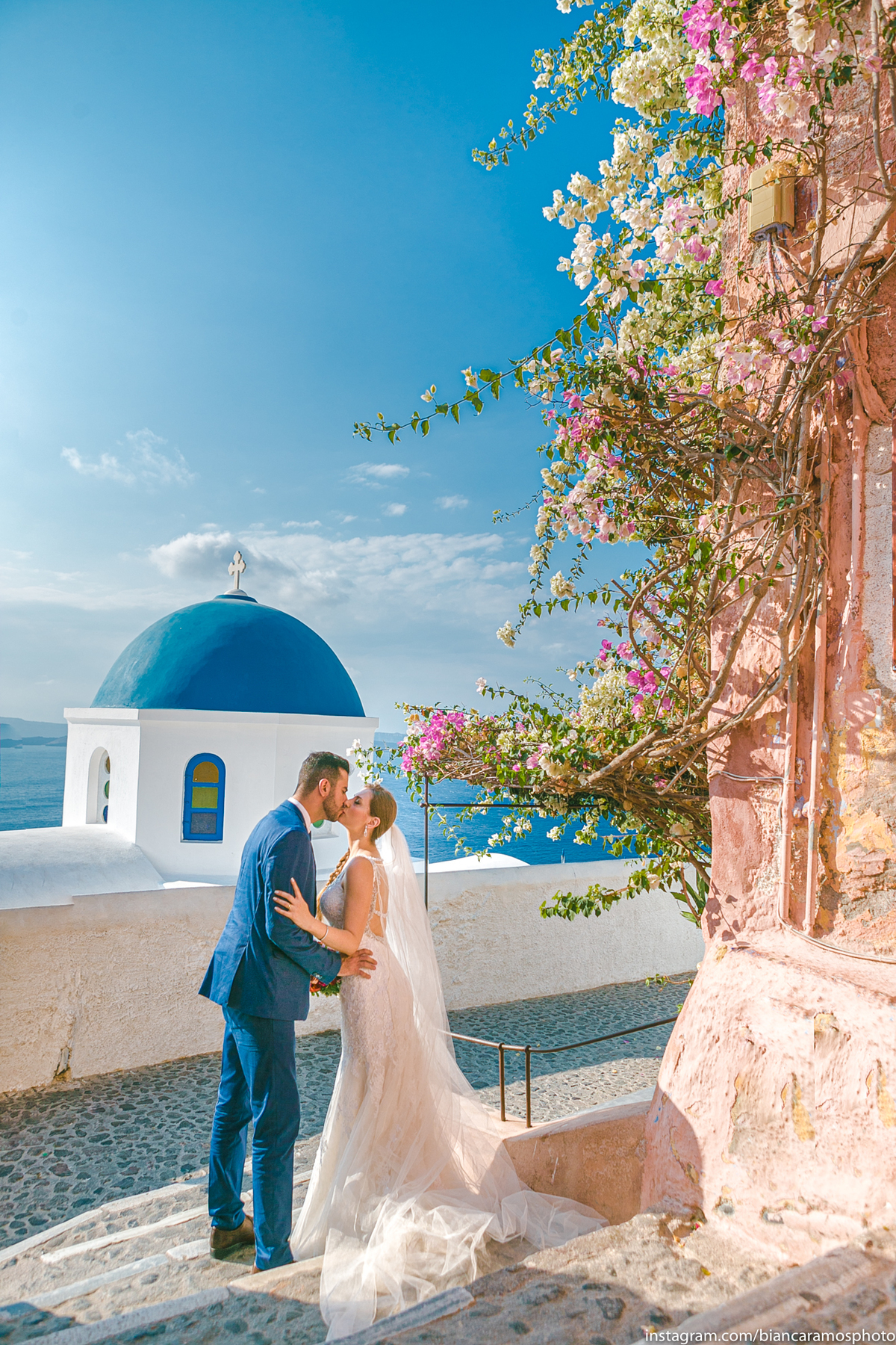 Apos a cerimonia fomos ate um ponto no alto da caldera para as fotos e no dia seguinte de manha, busquei o casal para as fotos nas igrejinhas de Oia!