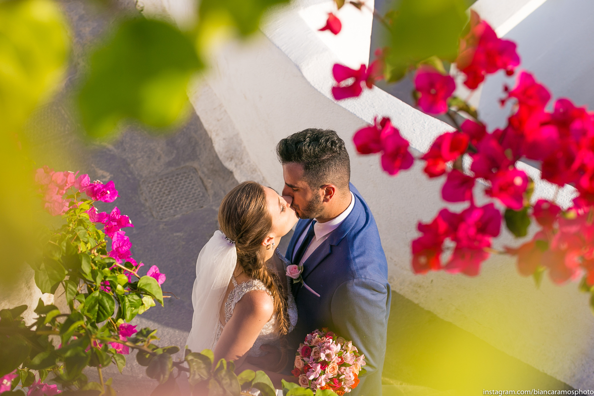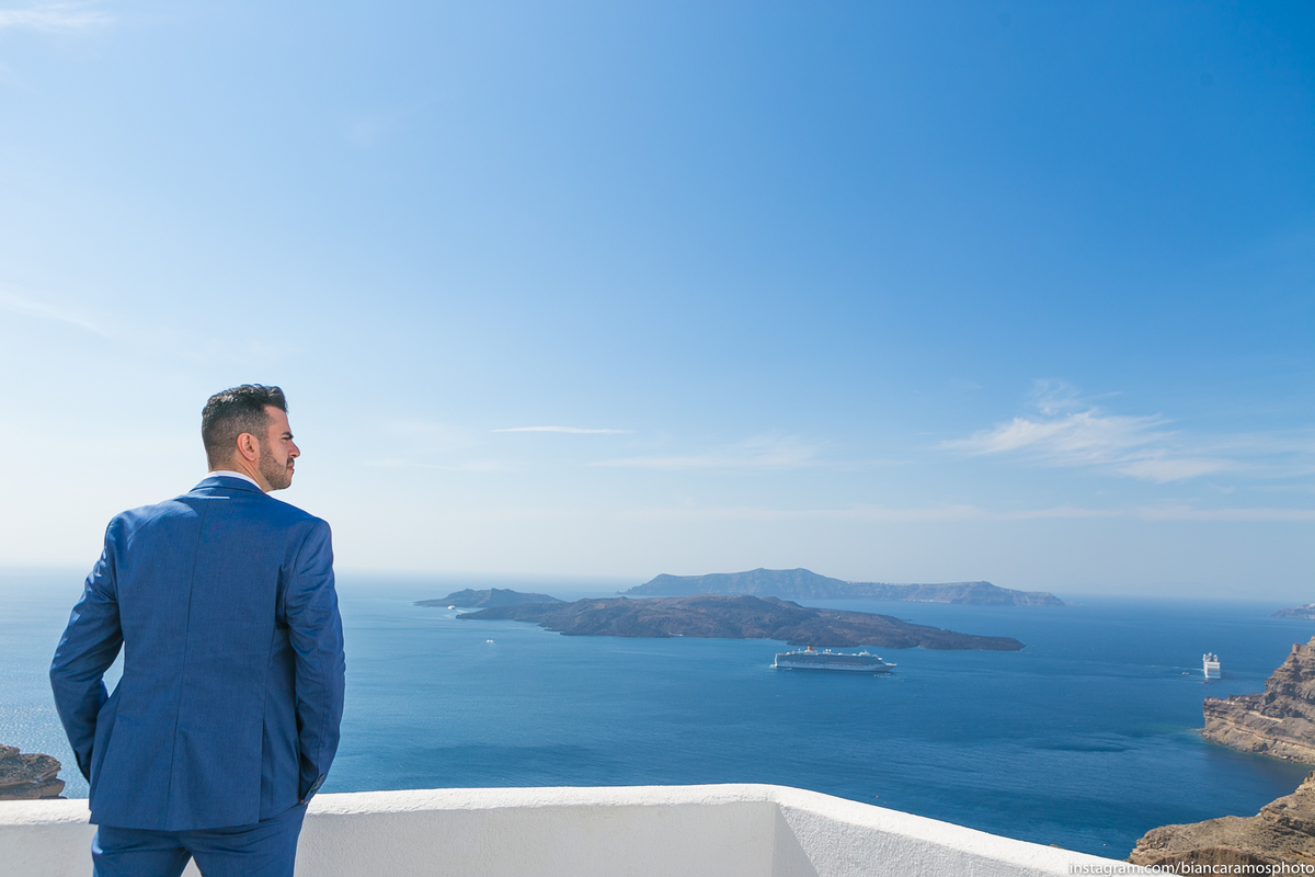 A cerimonia da Ana e do Alex foi no Santa Irini, localizado em Thira, esse local de casamento tambem é um hotel. Eles estavam hospedados la, o que nos permitiu fazer fotos por toda a área do hotel com muito mais calma!