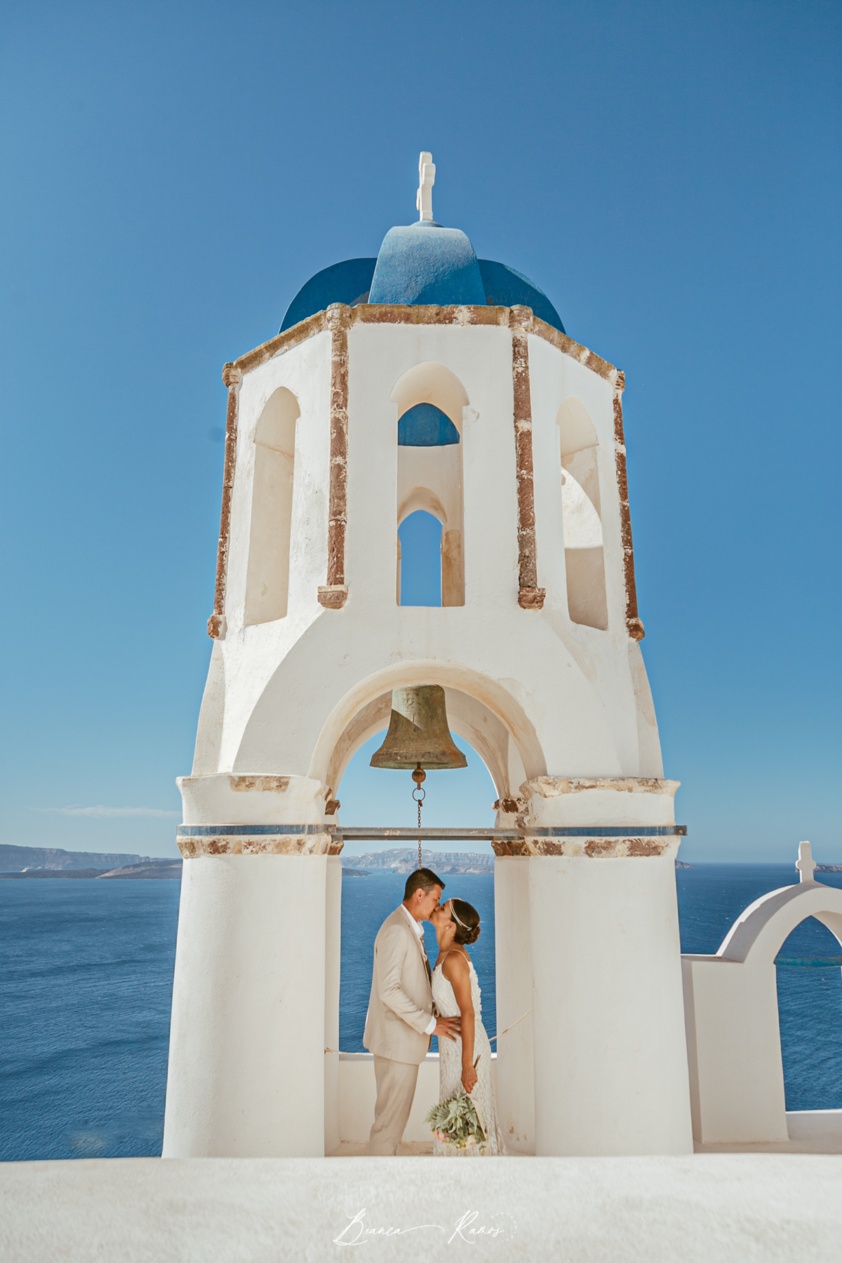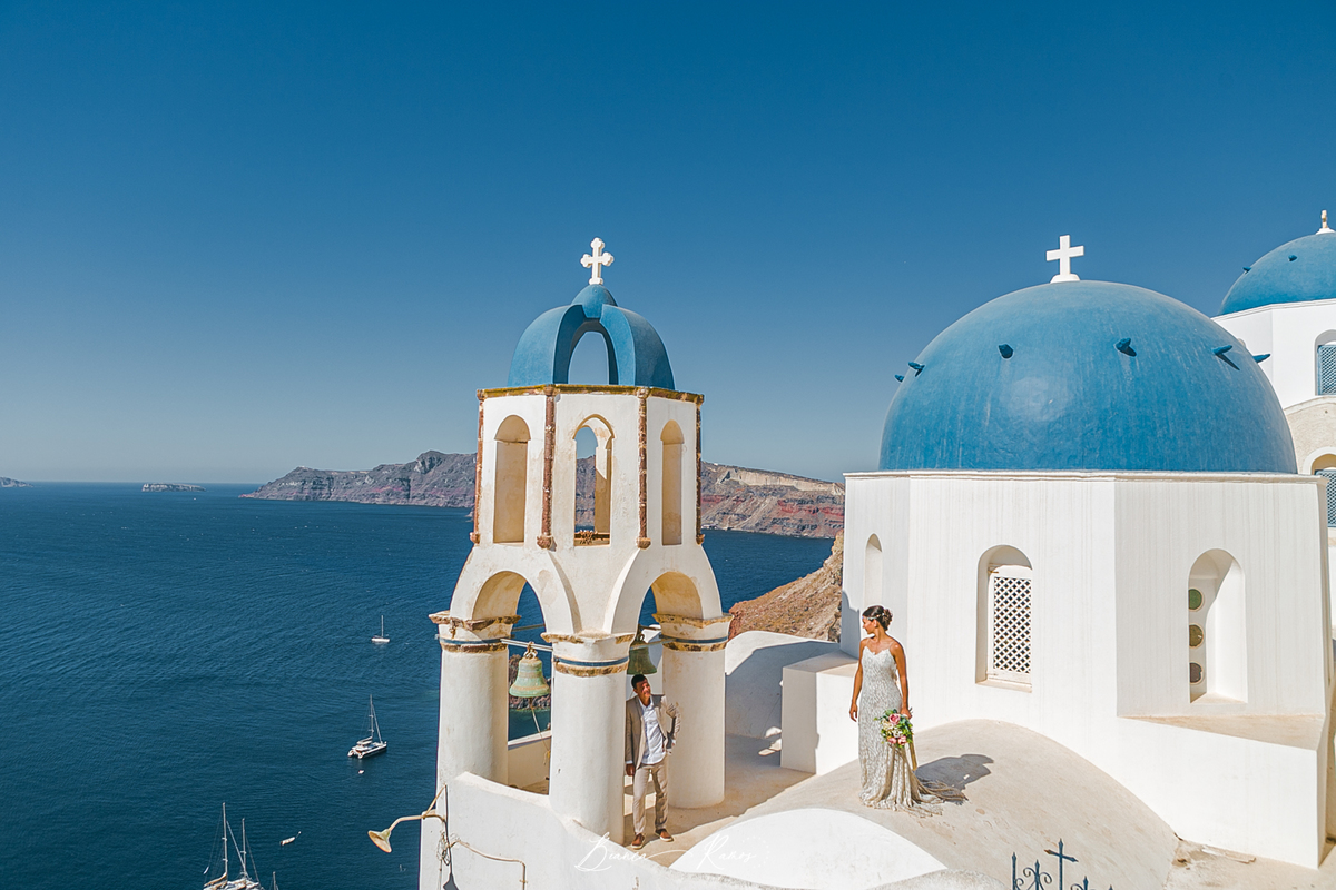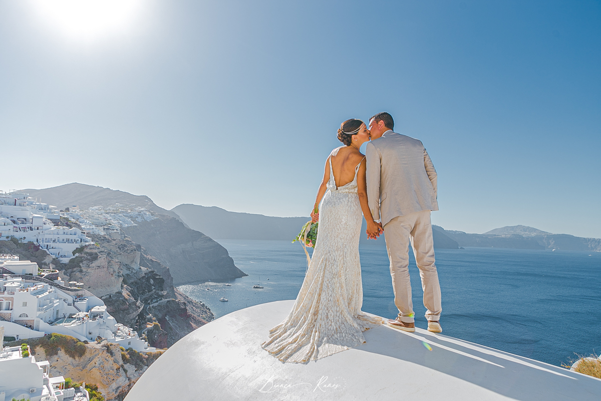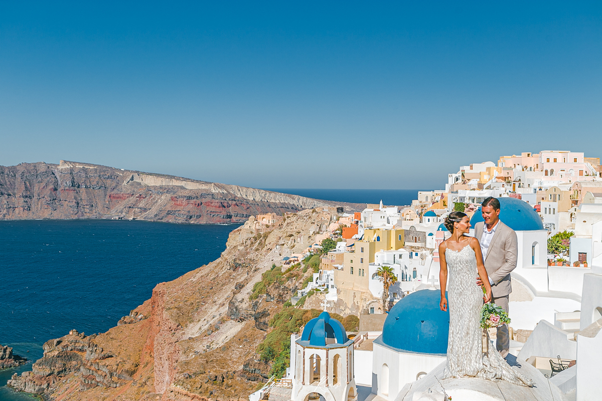 Eles estavam comemorando aniversario de casamento e aproveitaram para renovar os votos na ilha mais romântica da Grecia.